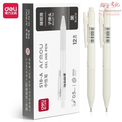 得力S18-A 学生中性笔0.5mm子弹头(臻顺滑)(黑)(12支/盒)SKU:yzwhyp977311