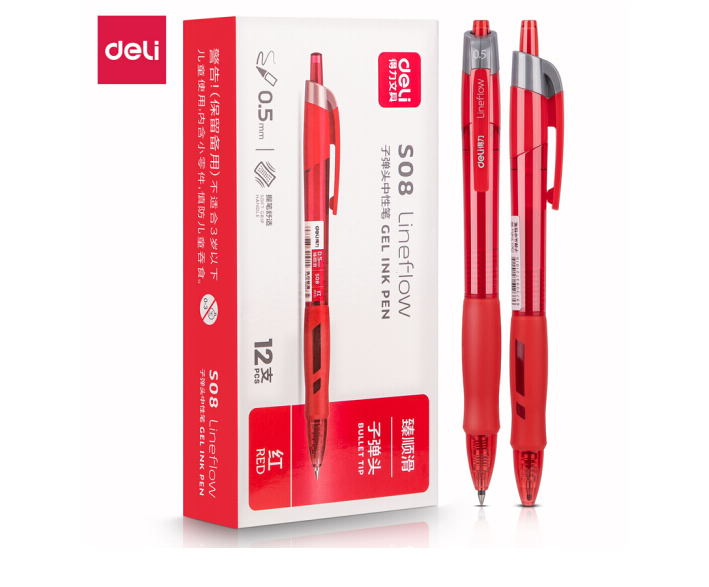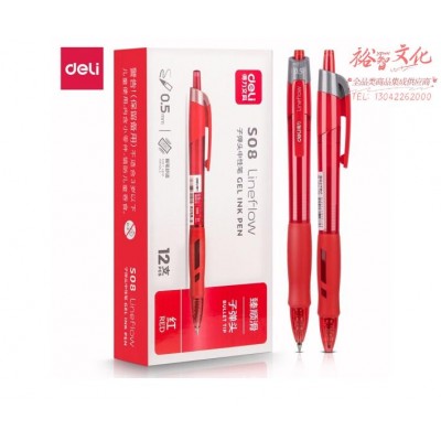 得力(deli)臻顺滑按动中性笔签字笔 办公用品 0.5mm子弹头 12支/盒S08红SKU:yzwhyp977320