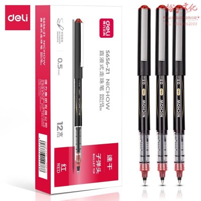得力S656-Z1 直液式走珠笔0.5mm子弹头(红)12支/盒SKU:yzwhyp977328