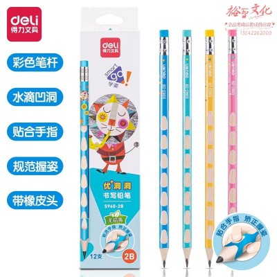 得力洞洞铅笔2b学习用品三角杆 12支-2B-S960SKU:yzwhyp977343