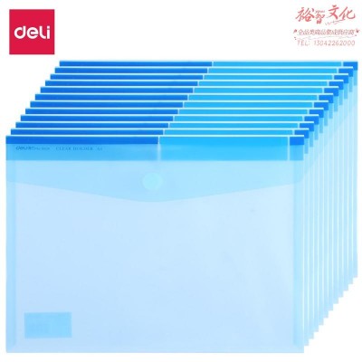 得力5504 12只A4加厚透明文件袋 粘扣资料袋 学生试卷收纳袋 防水档案袋 蓝色SKU:yzwhyp977353