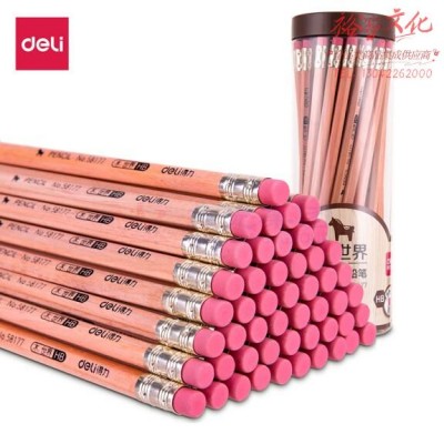 得力 58177 50支HB原木皮头六角杆铅笔(混) 50支/筒 SKU:yzwhyp977378