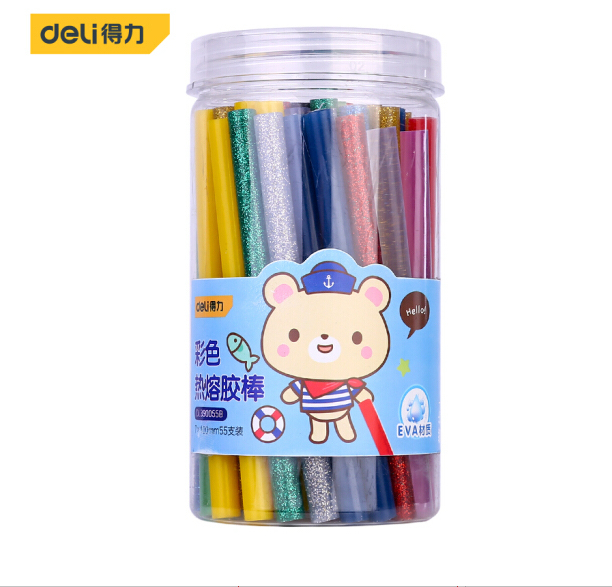 得力DL390055B 彩色高粘性热熔胶枪胶棒胶条55支装7mm*100mm ROHS认证 SKU:yzwhyp977405