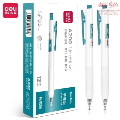 得力A200蜜糖色中性笔0.5mm子弹头(松石绿)12支/盒SKU:yzwhyp977440
