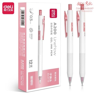 得力A200蜜糖色中性笔0.5mm子弹头(珊瑚粉)(珊瑚粉)12支/盒SKU:yzwhyp977453