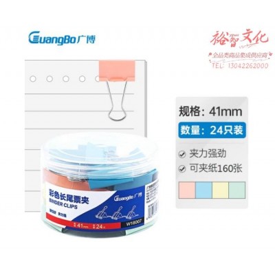 广博(GuangBo)24只41mm彩色长尾夹票夹2#金属燕尾夹票据夹子 办公用品W18007 SKU:yzwhyp977560