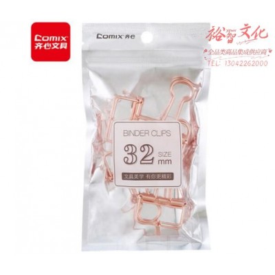 齐心(Comix)4只/袋32mm镂空长尾夹玫瑰金 办公用品B4040 SKU:yzwhyp977628