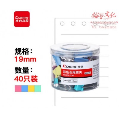 齐心(Comix)长尾夹票夹 彩色金属 5#19mm 40只/筒EB402 SKU:yzwhyp977657