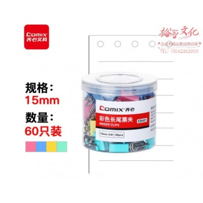 齐心(Comix)长尾夹票夹 彩色金属 6#15mm 60只/筒EB401 SKU:yzwhyp977659
