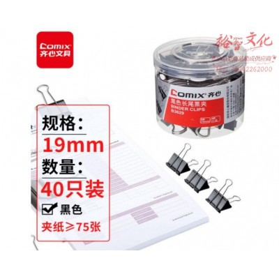 齐心(Comix)长尾夹票夹 黑色金属 5#19mm 40只/筒B3629 SKU:yzwhyp977676