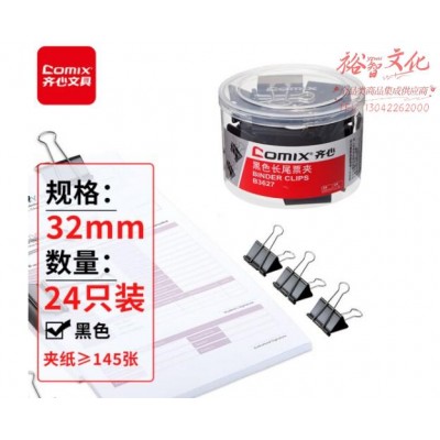 齐心(Comix)长尾夹票夹 黑色金属 3#32mm 24只/筒B3627 SKU:yzwhyp977682