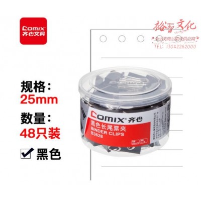 齐心(Comix)长尾夹票夹 黑色金属 4#25mm 48只/筒B3628 SKU:yzwhyp977689