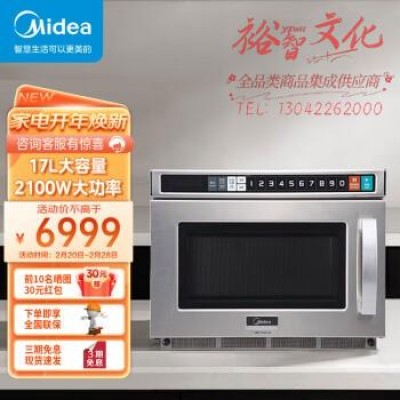 美的(Midea) 商用微波炉 快速解冻智能菜单高端17L大功率2100W 便利店酒店饭店高铁 EMB17G4V-SS SKU:yzwhyp977700