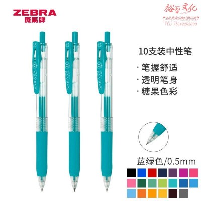 斑马牌(ZEBRA)JJ15 按动中性笔 签字笔 0.5mm子弹头啫喱笔水笔 彩色学生考试笔 蓝绿色 10支装SKU:yzwhyp977877