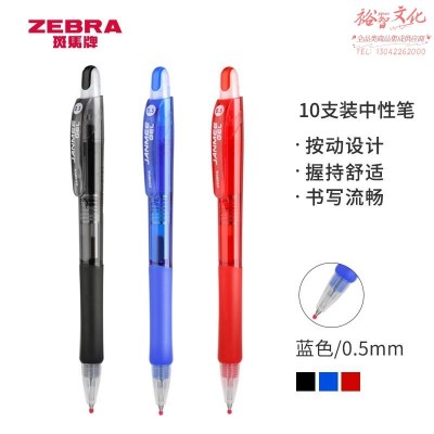 斑马牌(ZEBRA)中性笔 真美笔系列 0.5mm子弹头按压签字笔 学生考试笔 JJZ68 蓝色 10支装SKU:yzwhyp977891