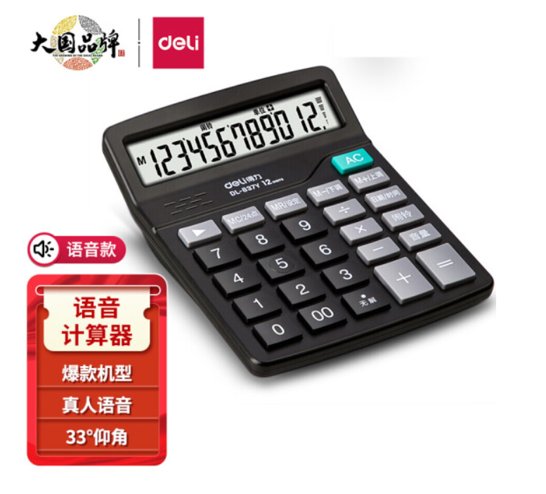 得力(deli)12位数通用语音计算机 桌面语音计算器 学生/办公口算 黑色837Y SKU:yzwhyp978198