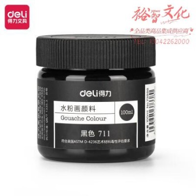 得力(deli)水粉颜料 100ml大容量罐装画画美术专用 黑色 SKU:yzwhyp978294