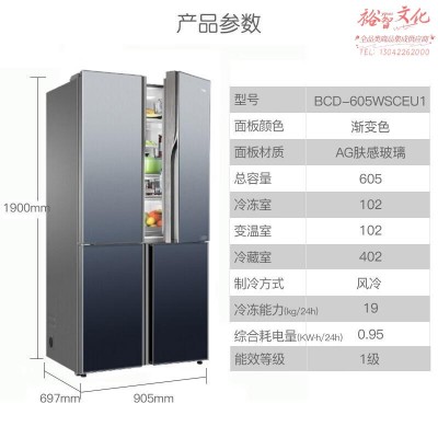 海尔全空间保鲜冰箱十字对开门双变频三系统 无霜智能大容积囤货大冰箱超大容量一级能效 BCD-605WSCEU1 SKU:SKU:yzwhyp978456