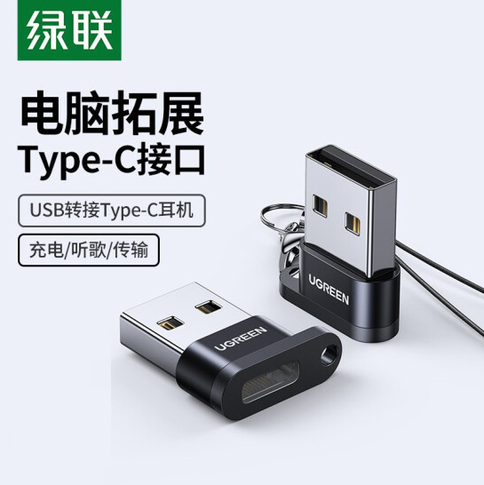 绿联 50568 USB转Type-C转接头 降噪耳机数据线充电线转换器头 SKU:yzwhyp978525