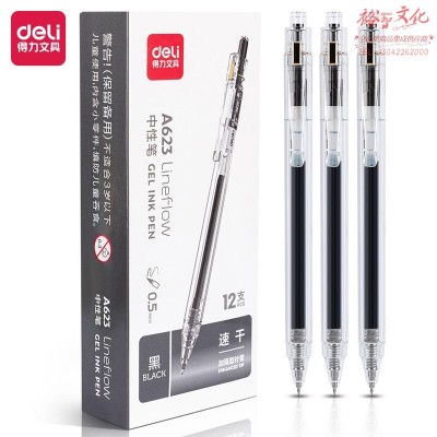 得力A623 按动签字笔 中性笔0.5mm按动加强型 针管 速干 签字笔(黑)(支) SKU:SKU:yzwhyp978869