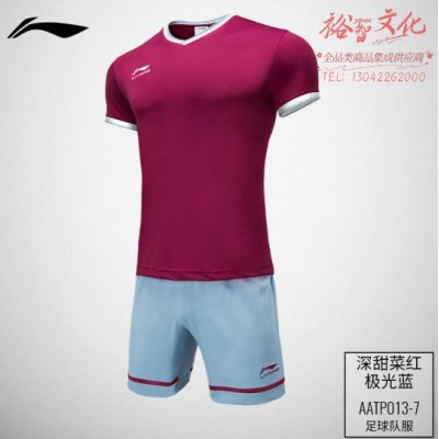 李宁AATP013-7 足球比赛球服套装 成人深甜菜红 极光蓝(码数备注)SKU:yzwhyp979042