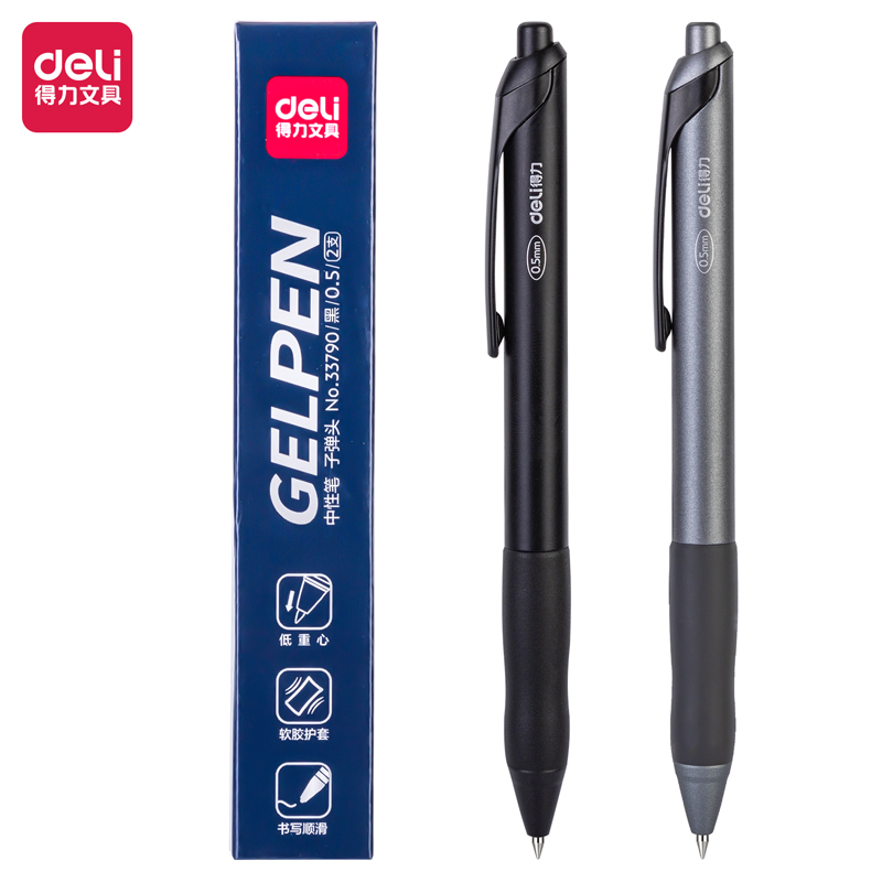 得力33790臻顺滑按动中性笔0.5mm子弹头(黑)(2支/盒) SKU:SKU:yzwhyp979081