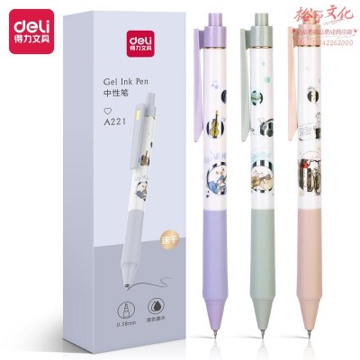 得力A221因为遇见你速干按动中性笔加强型针管0.38mm(黑色)(盒) SKU:SKU:yzwhyp979082