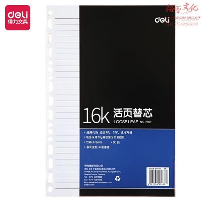 得力(deli)16K90张活页本册替芯260*178mm 9孔26孔记事本笔记本子内页 7937 SKU:yzwhyp979138