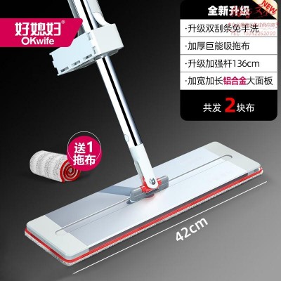 好媳妇HD-7021升级版铝合金平板拖把42CM 免手洗拖地板神器地拖 共2块布SKU:yzwhyp979408