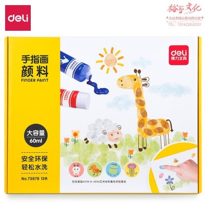 得力73878_12色60ml手指画颜料(混)(12色/盒)SKU:yzwhyp979571
