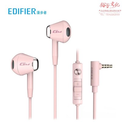 漫步者 GM180 平头塞半入耳式立体声手机音乐游戏耳机 带麦带线控 3.5mm有线入耳式 粉色SKU:yzwhyp979730