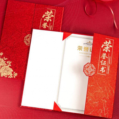 得力(deli)LP24819-47荣誉证书(红色) 三折页设计 特种纸封面 附内芯(227*305mm)
