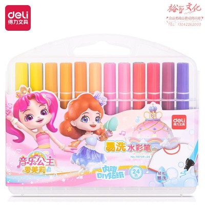 得力70739-24_PP盒装音乐公主三角杆水彩笔(混)(盒)SKU:yzwhyp980172