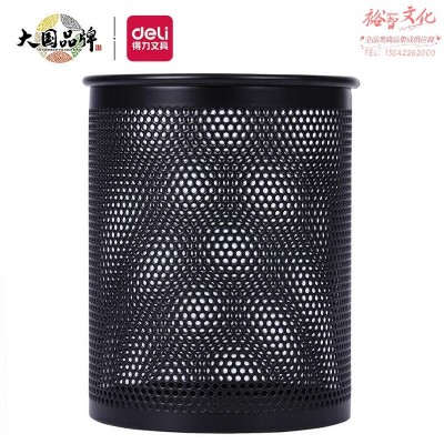 得力 (deli) 909 密集金属网纹圆形 笔筒 创意桌面收纳盒 办公用品 黑色SKU:yzwhyp980232