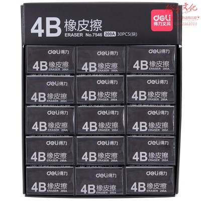 得力(deli) 橡皮学生文具橡皮擦彩色橡皮 学生美术考试专用2B4B橡皮擦 7546(4B)黑色大号 30块SKU:yzwhyp980285