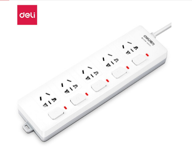 得力18176-03插座_5组_3米_PVC袋装(白)(只) SKU:SKU:yzwhyp980338