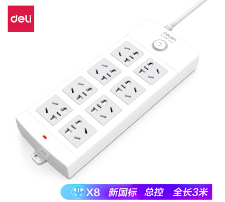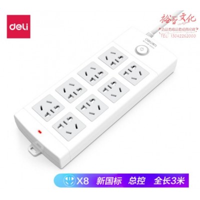 得力18211插座_8组_3米_PVC袋装(白)(只) SKU:SKU:yzwhyp980339