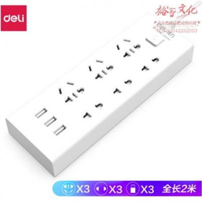 得力18283插座_3 3 3U_2米_彩盒装(白)(只) SKU:SKU:yzwhyp980347