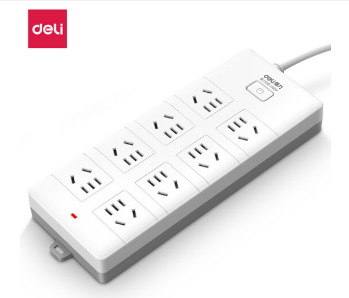 得力18263插座_8组_5米_PVC袋装(白)(只) SKU:SKU:yzwhyp980355