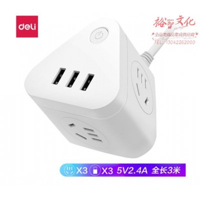 得力18321-03插座_3组 3U_3米_彩盒装(白)(只) SKU:SKU:yzwhyp980357