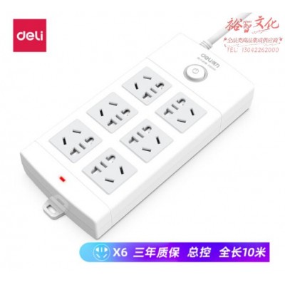 得力18207插座_6组_10米_PVC袋装(白)(只) SKU:SKU:yzwhyp980366