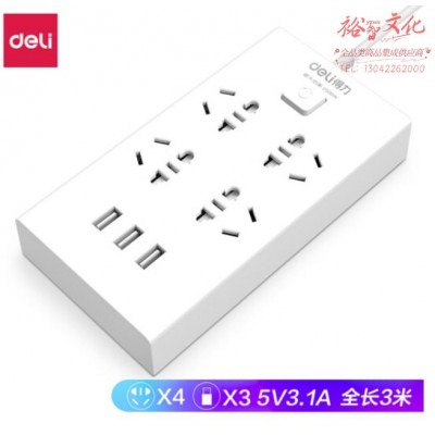 得力18282-03插座_4组 3U_3米_彩盒装(白)(只) SKU:SKU:yzwhyp980374