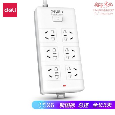 得力18261插座_6组_5米_PVC袋装(白)(只) SKU:SKU:yzwhyp980381
