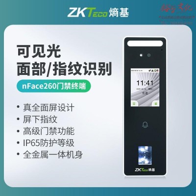 ZKTeco/熵基科技nFace260动态人脸指纹识别考勤门禁机 毫秒级IP65防水高级门禁打卡一体机 SKU:yzwhyp980408