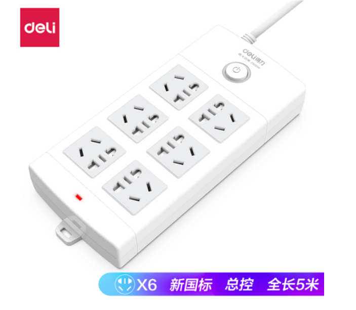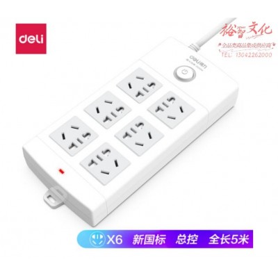 得力18206插座_6组_5米_PVC袋装(白)(只) SKU:SKU:yzwhyp980436