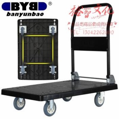 搬运宝(BYB)超强轻音小推车平板车手推车折叠手拉车拖车拉货车塑料搬运车大号90X60cm 承重800斤 JQ-59H炫黑 SKU:yzwhyp980595