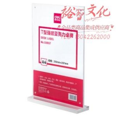 得力 50857 T型桌牌 亚克力强磁A4竖式展示牌 透明210*297mm(块)SKU:SKU:yzwhyp980708