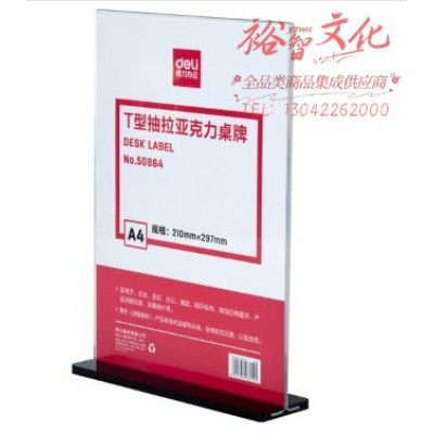 得力50864 T型桌牌 抽拉亚克力台签展示牌 透明210*297mm (块)SKU:SKU:yzwhyp980805