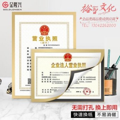 金隆兴9328营业执照框 磁性展示贴 营业执照保护套 公告栏贴纸 A3金色297*420mm SKU:SKU:yzwhyp980903