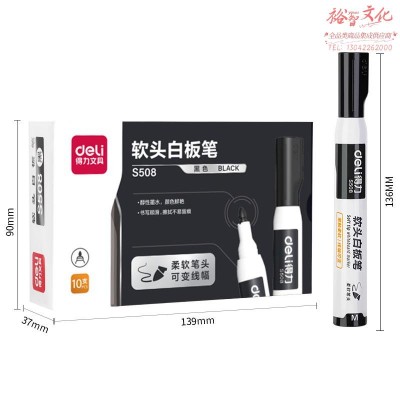 得力(deli) 软头可擦白板笔 办公教学会议白板笔 办公用品 黑色 10支/盒 S508蓝SKU:yzwhyp980924